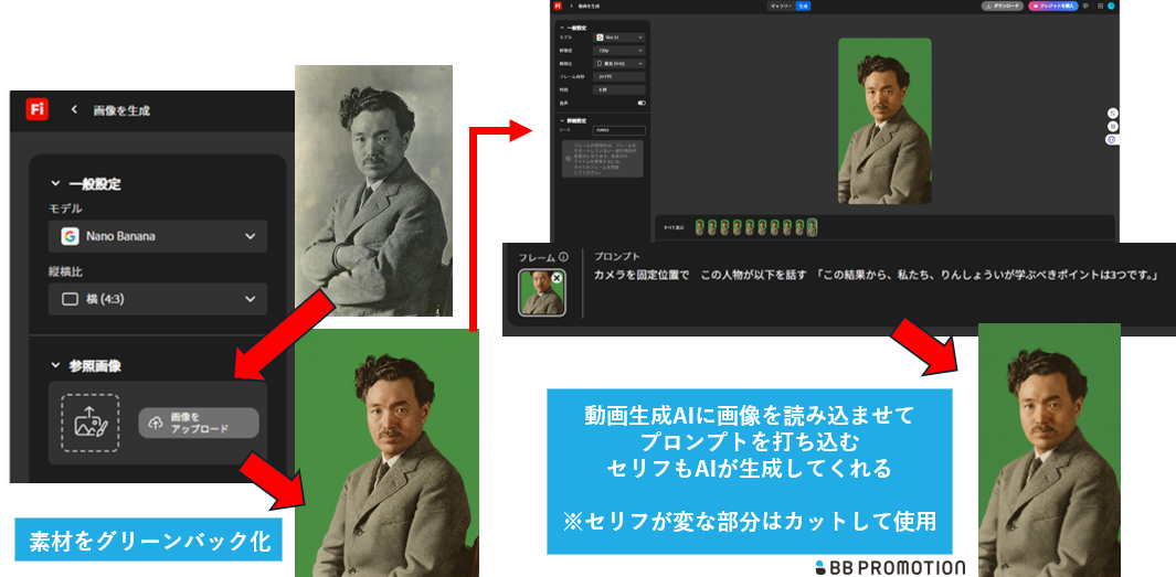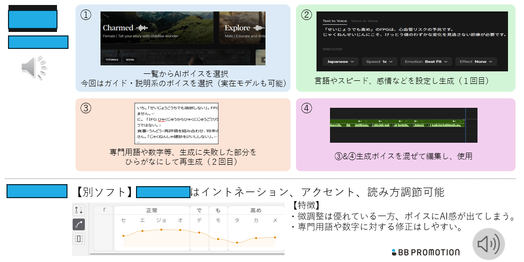 現在流通している様々な生成AIツールをできるだけ利用し、BBプロモーションで現在制作の主流となっているe-ディテーリング動画を作成する