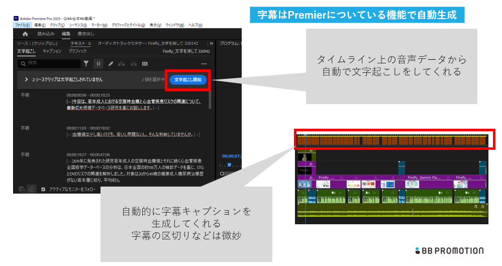 字幕入れについて・文節や区切りは微妙なので使用する場合はたたき台として使用してそこから手作業で調整するのが良さそう。